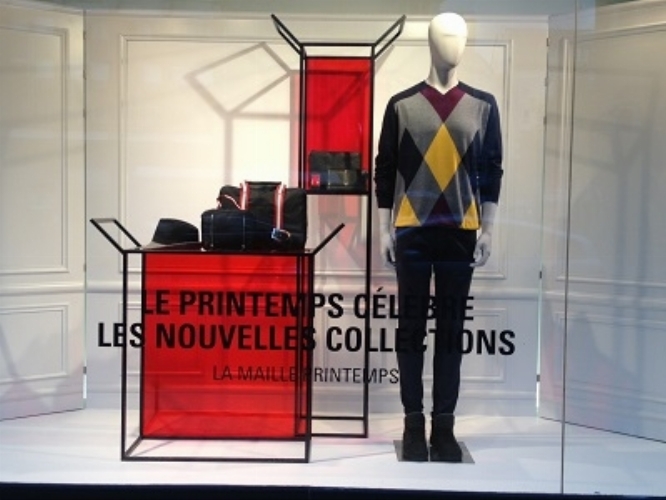 Réalisation sur-mesure de mobilier filaire de vitrines pour l’ensemble du réseau des magasins Printemps : armoire penderie aux portes ouvertes, coffre ouvert, tour étagère.