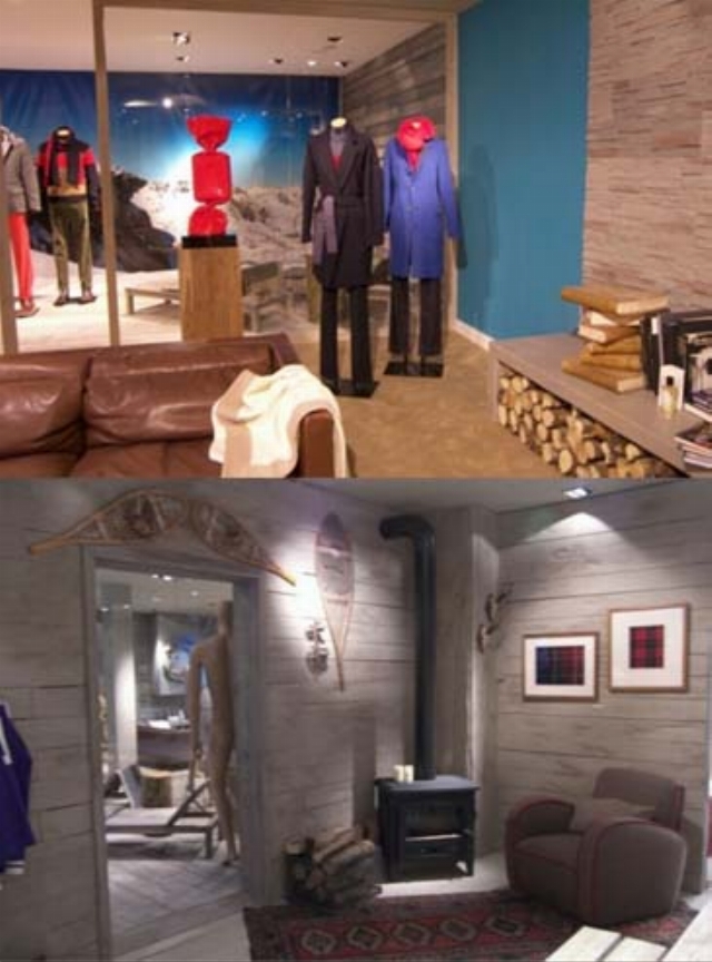 Le brief stipulait qu’il fallait décorer le showroom de la marque de manière à ce que le client se retrouve dans un chalet typique des Alpes, de préférence, du côté de Megève.