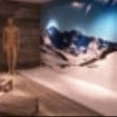 Pour ce showroom Façonnable, chaque pièce du chalet a été décorée dans le pur esprit de la montagne avec des murs recouverts de parements en pierre ou en bois. Olinda a réalisé une bâche avec une vue des Alpes.