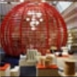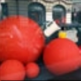 Sphères en polystyrène très haute densité avec finition manuelle d’enduit de lissage et mise en peinture à la teinte du thème vitrine.