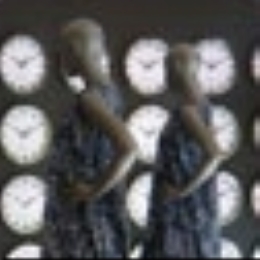 Dans un esprit « all over », la thématique de la pendule est déclinée en podium XXL et en accumulation sur les murs qui se prolongent au sol par un jeu de reflet en miroir qui double la quantité de montres et donne une sensation de profondeur.