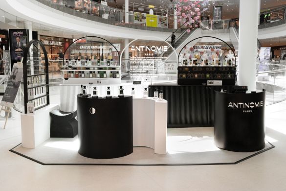 Itinerant stand design Display around the ritual of perfume Installation Centre Commercial Beaugrenelle Paris Installation Centre Commercial Westfield Les 4 Temps Parvis de la Défense