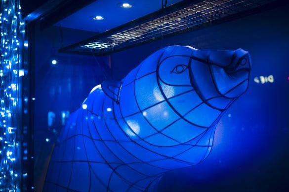Rattan work to create the structure of a giant bear 1.7m high and 3.3m long