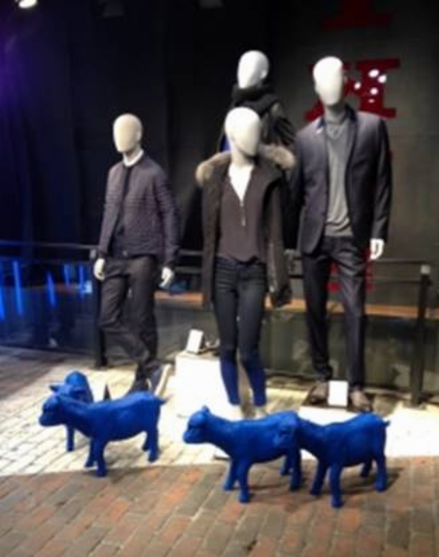 Réalisation sur-mesure de sculptures décoratives de chevreaux personnalisés au logo de la marque IKKS.